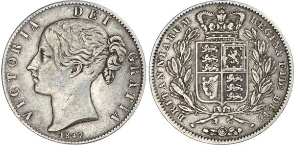 Victoria (1837‑1901), Crown, 1847. Young filleted head