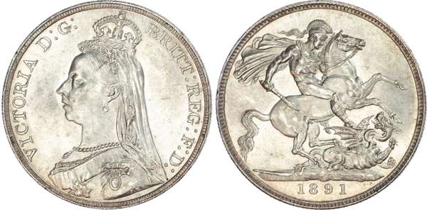Victoria (1837‑1901), Crown, 1891. Jubilee bust left. Rev, St. George slaying the dragon (S. 3921; Bull 2591; ESC 301). About Extremely Fine, a few minor contact marks.