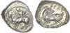 Cilicia, Kelenderis (c. 430‑420 BC) AR Stater, 10.82g. Youth, holding whip, dismounting horse left, Π below. Rev. Goat kneeling left, head right. (SNG BN 52). Extremely Fine for issue. Some lustre.