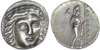 Satraps of Caria, Mausolus (377‑353 BC) AR Tetradrachm, 15.15g. Laureate head of Apollo facing slightly to the right. Rev. Zeus Labraundos standing right, holding double axe and spear. (SNG von Aulock 2360). Good Very Fine. Pleasing cabinet tone.