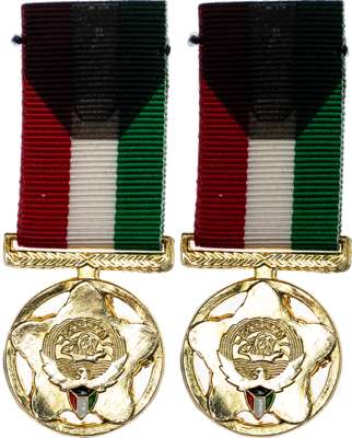 Elizabeth II (1952‑2022), Sovereign, 1958, in set entitled 'Behind Enemy Lines' alongside replica dress miniature medals (2): the Gulf War medal; Kuwait Liberation Medal, in case with certificates. The sovereign Extremely Fine.