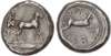 Charioteer driving a biga of mules right, laurel leaf below. Rev. RECION, hare springing right. (SNG ANS 625-631; HN Italy 2472; HGC 1, 1632). Good Very Fine. Some pleasing iridescent hues. Rare.
