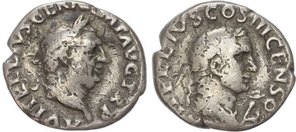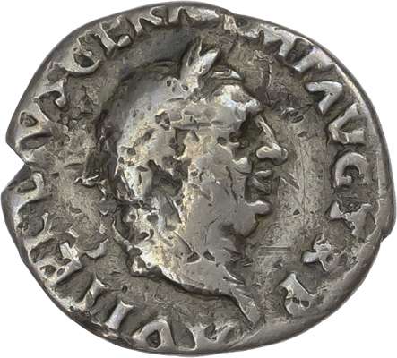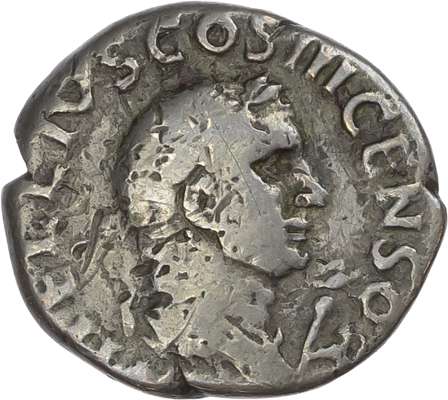 A VITELLIVS GERM P AVG TR P, laureate head of Vitellius right. Rev. L VITELLIVS COS III CENSOR, laureate and draped bust of Lucius Vitellius right, eagle-tipped sceptre to right. (RIC 99; BMC 26; RSC 2). About Very Fine. Rare.