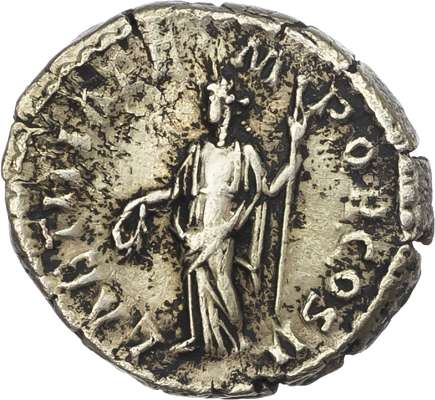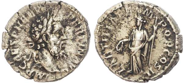 IMP CAES P HELV PERTIN AVG, laureate head of Pertinax right. Rev. LAETITIA TEMPOR COS II, Laetitia standing facing, head left, holding wreath and long sceptre. (RIC 4a; BMC 8). Very Fine. Mottled toning.
