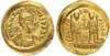 DN ANTHEMIVS P F AVG, helmeted, pearl-diademed, draped and cuirassed bust facing, holding spear over right shoulder. Rev. SALVS REI-PVBLICAE, Anthemius and Leo standing facing, in military attire, each holding spear and a globus cruciger between them, Roma monogram below, COMOB in exergue. (RIC 2831; Depeyrot 65/2). Good Very Fine. Bright. Rare.
