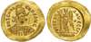 DN ZENO P-ERP F AVG, helmeted, pearl-diademed, draped and cuirassed bust facing, holding shield and spear over right shoulder. Rev. VICTORI-A AVGGGr, Victory standing left, holding long jewelled cross, COMOB in exergue. (RIC 3655; MEC 1). Extremely Fine. Graffito to obverse. Rare.