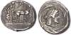 Charioteer, holding reins and kentron, driving quadriga right, dolphin below, Nike flying right above, crowning the horses. Rev Σ VR - A - KO - I - ON, diademed head of Arethusa facing right, four dolphins around. (Boehringer 314; HGC 1307; Warren 316). Good Very Fine. Pleasing cabinet tone.