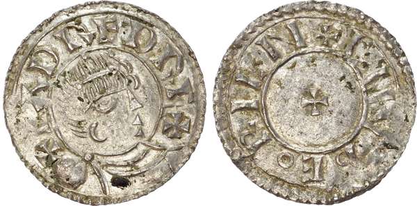 Crude crowned and draped bust left, +EADRED RE+. Rev, small cross pattée, +CNVbEoRILN, 1.13gm (S. 1115; N. 713). Good Very Fine, rare, some metal excess behind drapery and a couple of tiny deposits on obverse, a little bright.