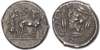 Charioteer, holding kentron and reins, driving quadriga right, Nike above, crowning the horses. Rev. Λ-EONT-I-NON, head of a roaring lion right, four grains of barley around. (SNG ANS 202-3; HGC 2, 660). Extremely Fine. Exceptionally well struck obverse. Rare.