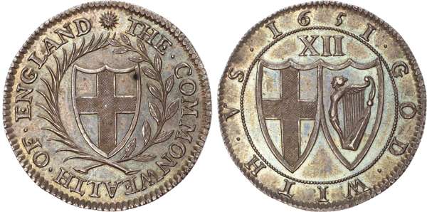 Commonwealth (1649-1660) Pattern Shilling, 1651, by Blondeau, mintmark sun.
