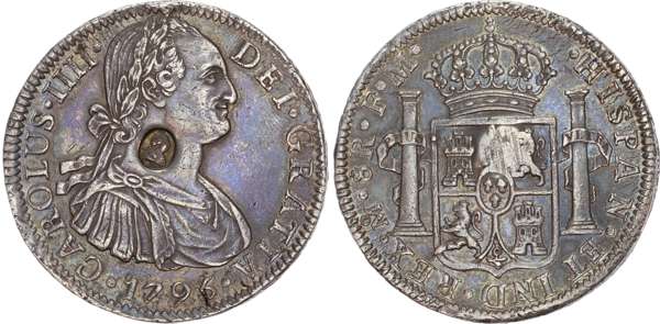George III (1760-1820), Emergency Issues (1797-1799), Oval-Countermark Dollar (8-Reales), 1796