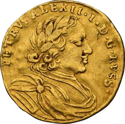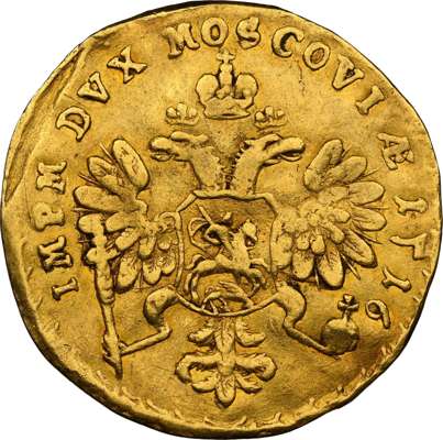 Russia, Peter I the Great (1682-1725), gold Ducat, 1716, Moscow mint, variety with reverse 7 in date and no rivets on sleeve, draped and cuirassed bust right, with clasp. Rev. Crown above Imperial eagle, 3.43g (KM 151; Bit. 57 (R3); Diakov 6). In NGC holder graded XF 40 (6770039-001). Photo by NGC. One of the rarest Russian coins, this astonishingly rare Ducat of Peter the Great (Bitkin 57) has never previously been on the market.
