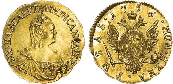 Russia, Elizabeth I Petrovna (1741-1761), gold Rouble, 1756