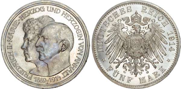 Germany, Anhalt, Frederick II (1904-1918), silver 5 Marks.