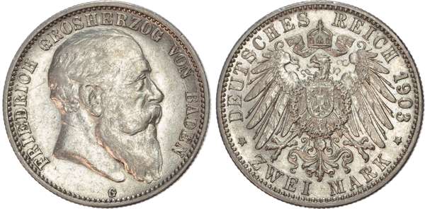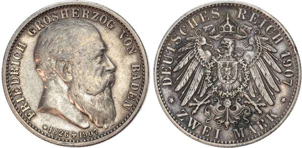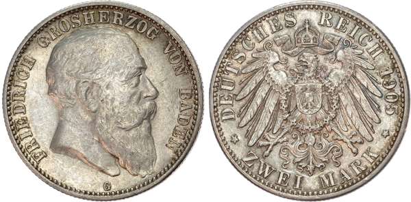 Germany, Baden, Frederick I (1858-1907), silver 2 Marks (5).