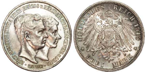 Germany, Brunswick, Ernst August (1913-1918), silver 3 Marks.