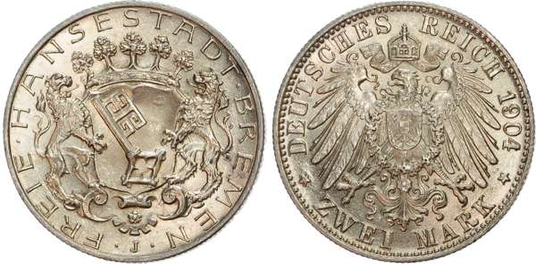 Germany, Bremen, silver 2 Marks.