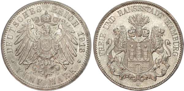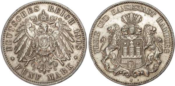 Germany, Hamburg, silver 5 Marks (4).