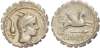 Head of Juno Sospita facing right, ram behind. Rev. Griffin leaping right, Capricorn below, L•PAPI in exergue. (Crawford 384/1 Sydenham 773). Very Fine.
