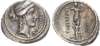 C MEMMI C F, head of Ceres facing right, wearing a wreath of grain ears. Rev. C•MEMMIVS / IMPERATOR, captive kneeling right, trophy behind. (Crawford 472/1; Sydenham 920). A couple of small marks. Good Very Fine. Pleasing cabinet tone.