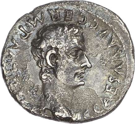 C CAESAR AVG GERM P M TR POT, laureate head of Caligula right. Rev. DIVVS AVG PATER PATRIAE, radiate head of Divus Augustus right. (RIC 10; BMC 10; RSC 11). Very Fine. Rough surfaces.
