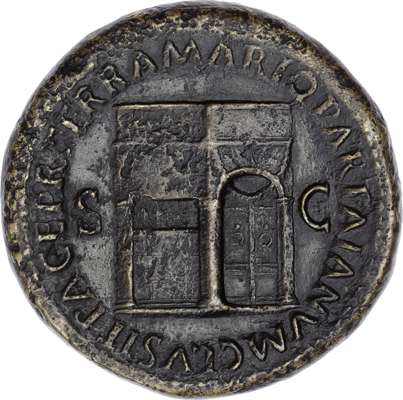 NERO CLAVD CAESAR AVG GER P M TR P IMP P P, laureate head of Nero right. Rev. PACE P R TERRA MARIQ PARTA IANVM CLVSIT, the Temple of Janus with its doors closed, S-C across fields. (RIC 266; BMC 161). Good Very Fine. Full flan. Some minor smoothing. Excellent metal.