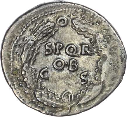IMP SER GALBA AVG, bare head of Galba right. Rev. SPQR / OB / C S, within a laurel wreath. (RIC 167; BMC 34; RSC 287). Good Very Fine. Cabinet tone. Large flan.