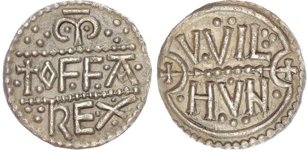 London, Wilhun. +OFFA REX, in three lines, pellets surrounding. Rev. WILHVN, in two lines, pellets surrounding, 1.41g. Almost Extremely Fine, scarce. (N. 324; S. 908).