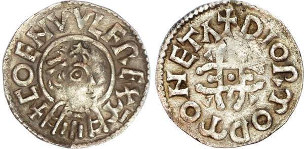 Kings of Mercia, Coenwulf (796-821), AR Penny, Group III and IV, Portrait type, Canterbury, Diormod. Diademed bust right, rev. Voided pincer cross, wedge in each angle, pellet in centre, DIORMOD MONETA, 1.34gm. (EMC 2015.0111; Naismith C39.1; BLS 37, 44; N 347; S 916). About Very Fine, small flan split at 6 o'clock, otherwise, rare.