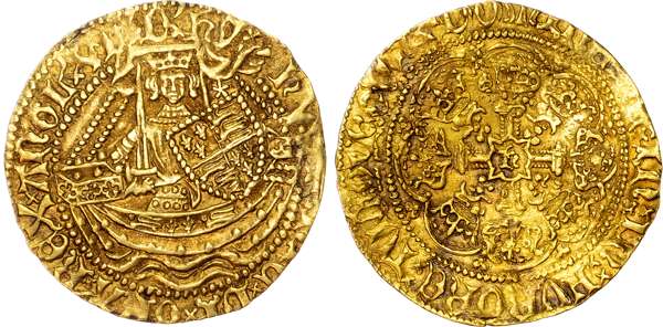 Henry V (1413-1422) Half Noble, standard type B, class F/E mule, London mint.