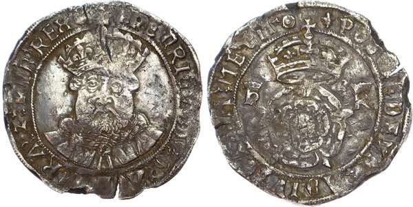 Crowned bearded bust of King facing wearing mantle with collar of fur, beaded linear circles both sides, mintmark lis Latin legend reads HENRIC […] DI GRA ANG FRA Z HIB REX. Rev, crowned h to left and R to right divided by large crowned Tudor rose, mintmark pellet in annulet, legend surrounds POSVI DEVM ADIVTORVM MEVM, 6.80gm (S. 2364/5; N. 1841). Good Very Fine for issue, with a particularly pleasing portrait.