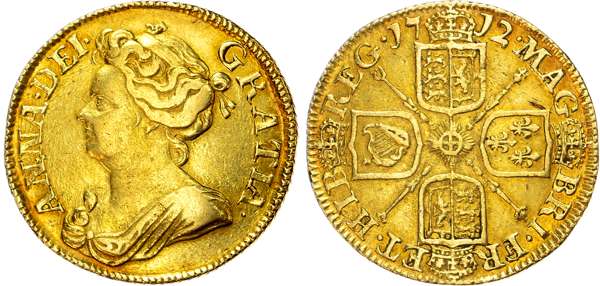 Anne (1702-1714) Guinea, 1712, post-union with Scotland.