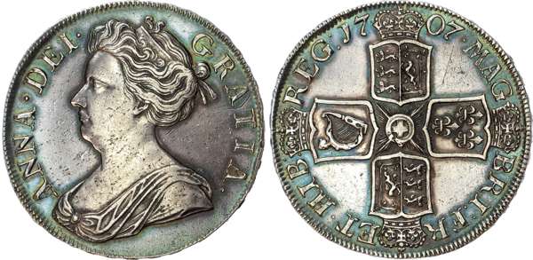 Anne (1702-1714) Crown, 1707, SEPTIMO, post-union with Scotland.