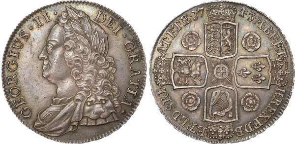 George II (1727-1760), Crown, 1743, DECIMO SEPTIMO