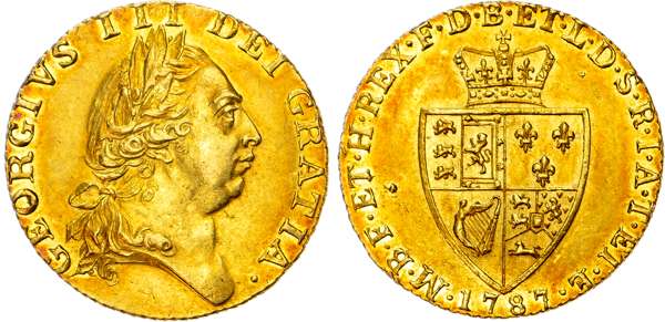 George III (1760-1820) 'Spade' Guinea, 1787. Fifth laureate head
