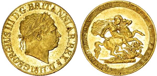 First laureate head right. Rev, St. George slaying the dragon right (S. 3785; EGC 895; Bentley 4; MCE 464; Marsh 1). Near Very Fine.