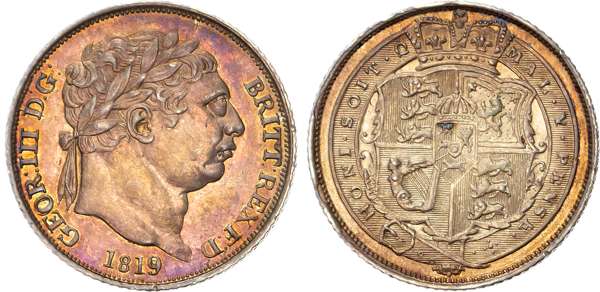 George III (1760-1820), Sixpence, 1819, laureate head right. Rev. crowned shield within Garter, (Bull 2201; ESC 1636; S.3791). Extremely fine, reddish tone.