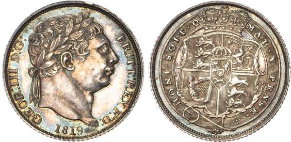 George III (1760-1820), Sixpence, 1819, laureate head right. Rev. crowned shield within Garter, (Bull 2201; ESC 1636; S.3791). Good extremely fine, toned.
