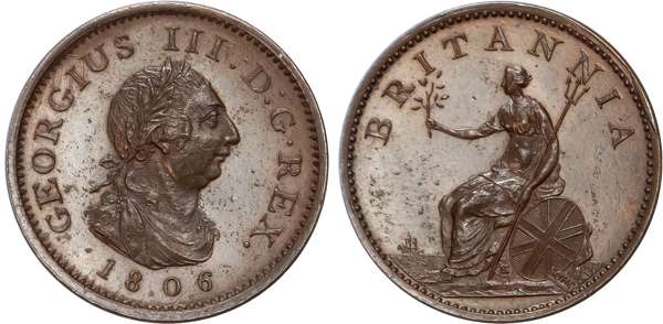George III (1760-1820), Proof Farthing, 1806, Restrike struck in bronzed copper