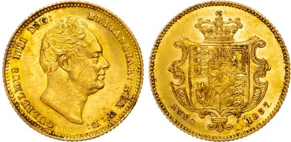 William IV (1830-1837) Half Sovereign, 1837, large size.