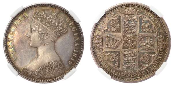 Victoria (1837-1901) Florin, 1849, ‘Godless’ type.