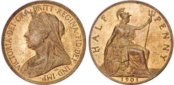 Old veiled bust facing left, T.B. below truncation. Rev, Britannia seated right, date in exergue (S. 3962; Freeman 378 dies 1+B). Uncirculated with full lustre both sides.
