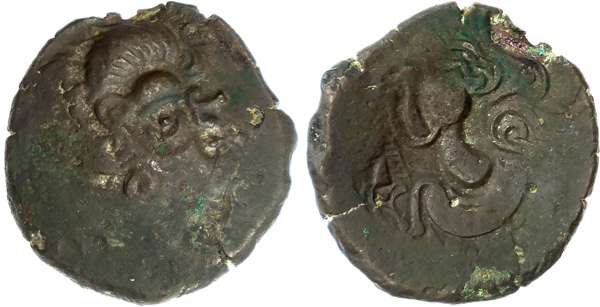 c. 75-50 B.C. Stylized head right, anchor-shaped nose, rev. Celticised horse right, boar below. (S. 16; McCammon i/j; La Tour 6614). Good Very Fine, weakly struck with a green patina.