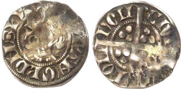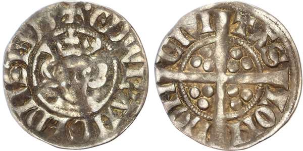 Crowned facing head, rev, Long cross pattée with three pellets in each angle, 1.27gm (N. 1023; S. 1394), London mint, Class 4D, 1.39gm (N. 1026; S. 1397), and London mint, Class 4E, 1.39gm (N. 1027; S. 1398). [3] All Fine, last with some slight bending.