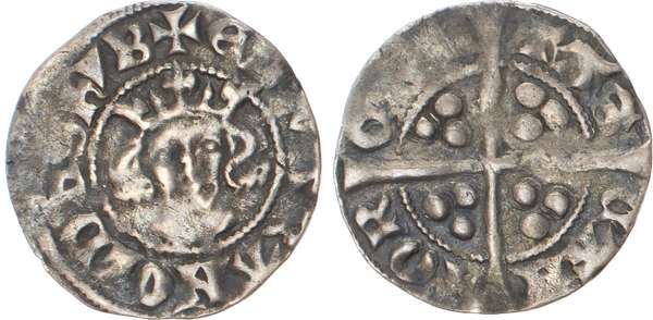 Crowned facing head, +EDWA R ANGL DNS HYB, rev, Long cross pattée with three pellets in each angle, CIVITAS CANTOR, 1.29gm, 1.23gm (N. 1041; S. 1419). [2] First Fine, second Good Fine, reverse of second slightly off-centre.