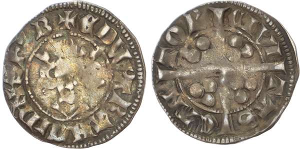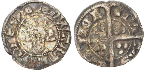 Crowned facing head, +EDWA R ANGL DNS HYB, rev, Long cross pattée with three pellets in each angle, CIVITAS CANTOR, 1.43gm, 1.32gm (N. 1060/3; S. 1466). [2] Both good Fine, well centred but weakly struck.