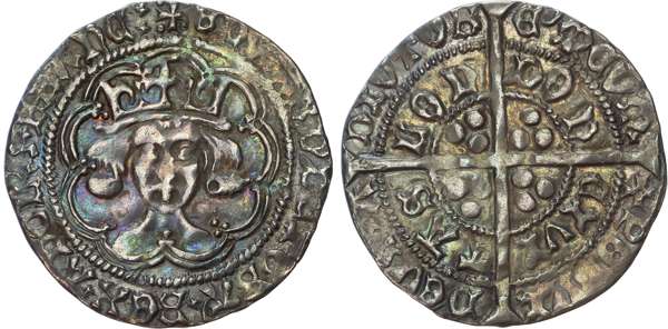 Mint - London, mm. cross and four pellets/pierced cross, Crowned facing bust within tressure of arches, trefoils on all cusps, rev. Long cross pattée; triple pellets in quarters, 3.06gm. (B & W XVI, 3; N 1631; S 2096). About Very Fine with iridescent toning.