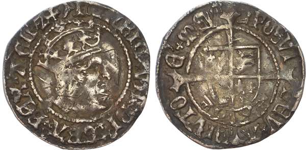 mm. martlet – struck York 1485-1509 by Bishop Bainbridge. Crowned bust right within inner beaded circle. rev. Quartered shield of arms over long cross fourchée with two keys below, all within inner beaded circle. (N-1751/1; S 2262). Good Fine and toned, some scratches on obv.