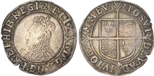 Tower mint; mm: 2 - struck 1602. Crowned bust (6B) left, rev. Royal arms over long cross fourchée. 5.98gm. (N 2014; S 2584). About Very Fine, toned.