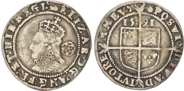 Elizabeth I (1558-1603), AR Sixpence, 1591.